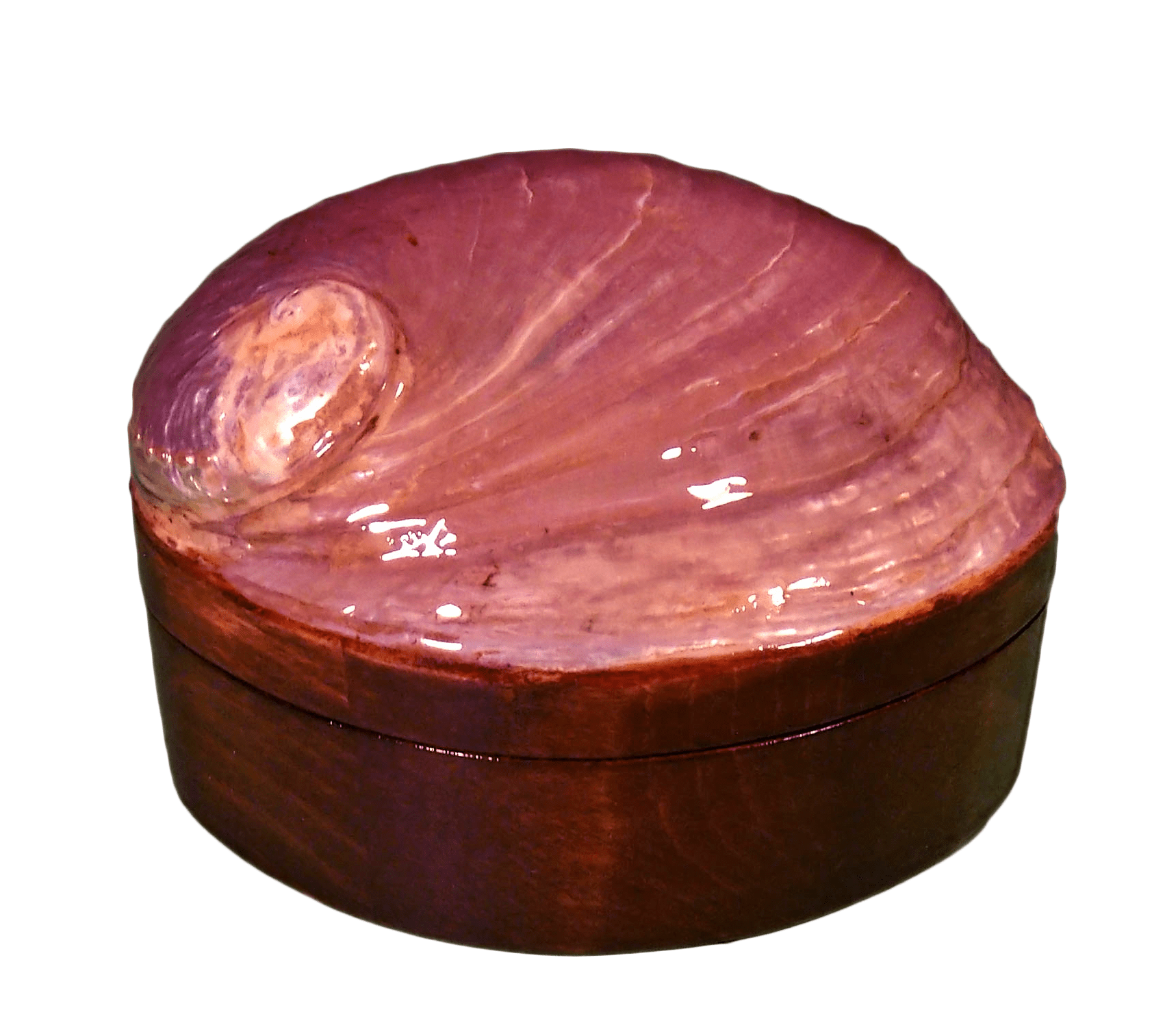One of a kind mother pearl jewellery box made of a whole shell which covers the upper lid of the box. The natural shades of almond colour of the shell with the contrasting colour of the wood which is painted in hazelnut colour makes this piece a real admirable one.